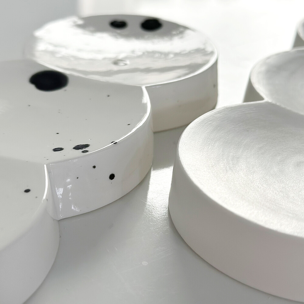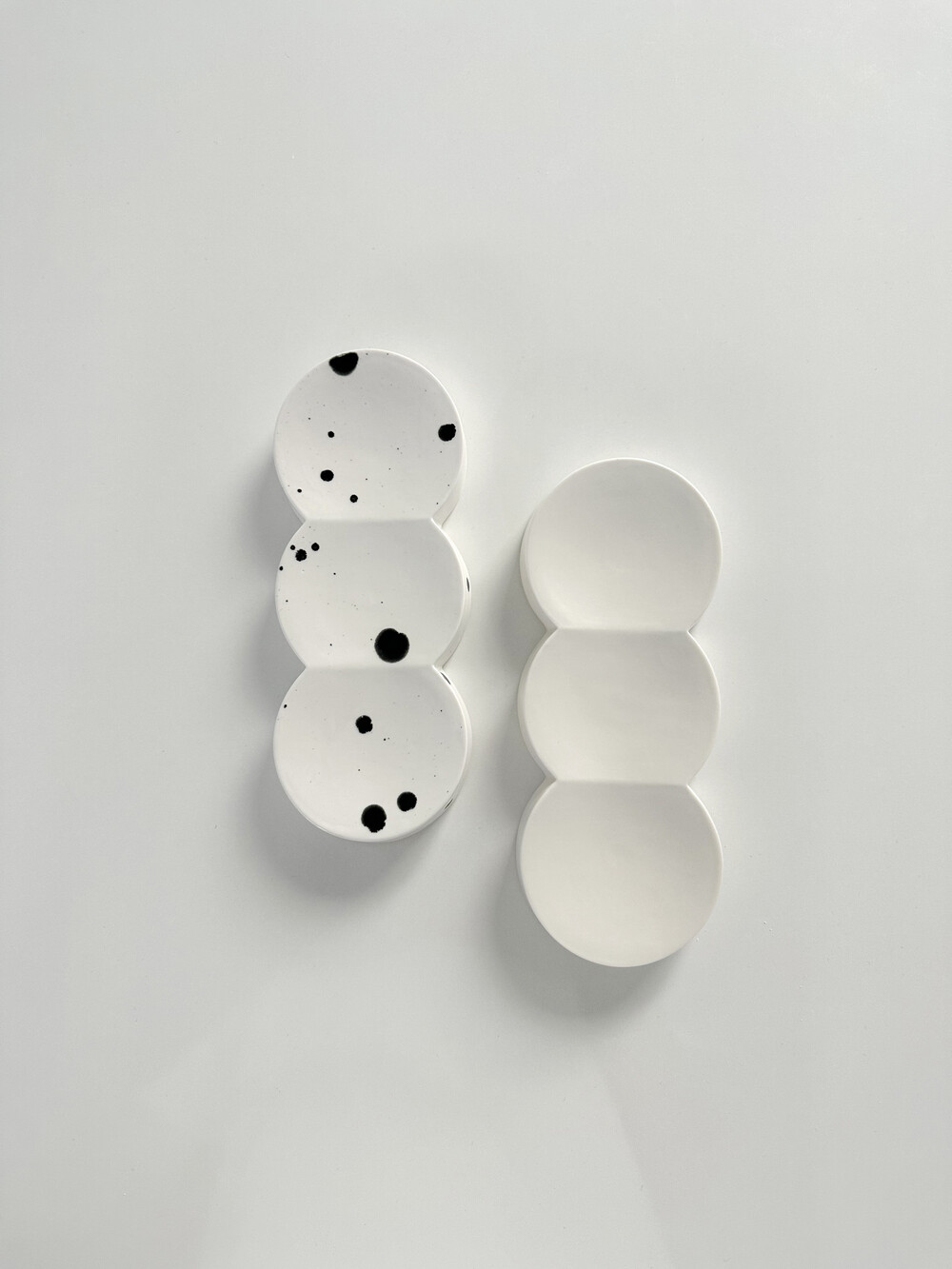 호도 세라믹 스튜디오에서 제작한 매트한 질감의 3 교집합 형태의 트레이 입니다.